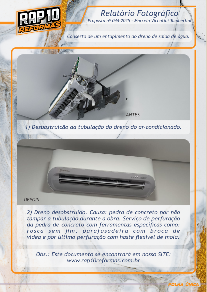 1) Visita Técnica e possível desentupimento do dreno do ar-condicionado.